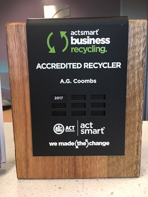 A.G. Coombs are proud to join over 900 businesses across the ACT and Queanbeyan in signing up to the Actsmart business recycling initiative.
