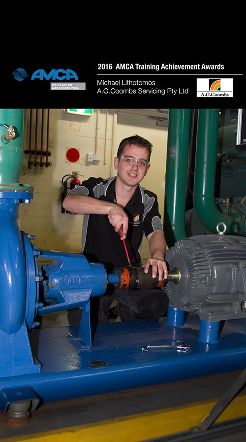 A.G. Coombs is celebrating multiple wins from this year’s Air-Conditioning and Mechanical Contractors’ Association (AMCA) Victorian Training Achievement Awards, taking out the overall Training Achievement Award, the Category Award for Drafting and the Category Award for Refrigeration & Air Conditioning along with a Presidents Encouragement Award in the Category for Mechanical Plumbing.