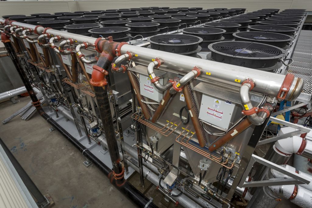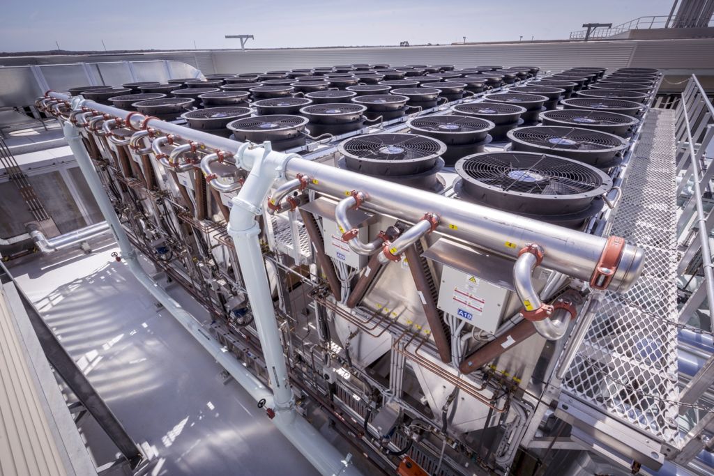 As part of the vision for the hospital to be sustainable, energy-efficient and future-ready, a new gas-powered tri-generation system supply low Carbon electrical power, heating and cooling to the entire building. Rooftop adiabatic coolers, in place of standard cooling towers, will help with reducing water consumption, as well as mitigating the risk of Legionella through the use of a closed loop heat rejection system.