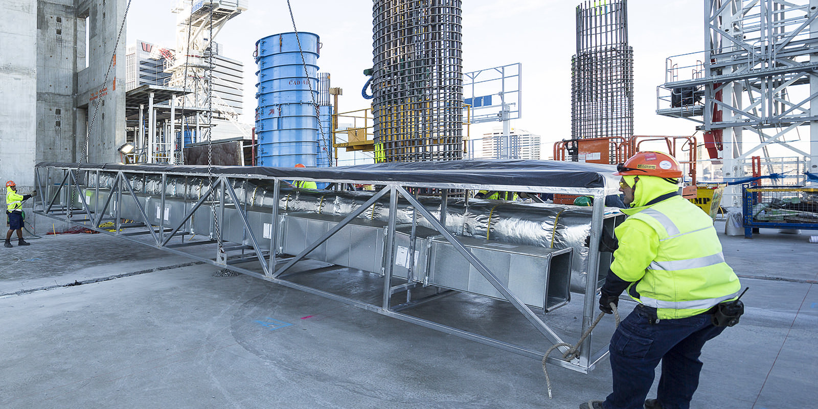 The single biggest safety risk identified in the construction of many high-rise buildings is the installation of services risers. At Barangaroo, A.G. Coombs together with Lendlease introduced a new way to install services risers in high rise towers. By prefabricating, well in excess of 4,000 hours of complicated installation per tower were transferred into a controlled factory environment and the need to work at height is almost eliminated. This innovative approach to HVAC and building services installation very significantly reduces construction risk, and improves quality and future maintainability.